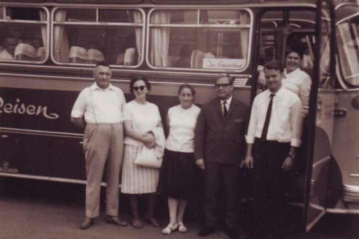 Am 1.5.1965 Geschäftseröffnung durch Werner Fass am Altengrodener Weg 118 mit einem gebrauchten 41 Sitzer Setra-Reisebus.