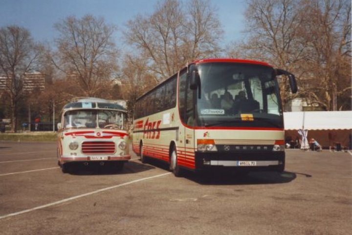 der Oldtimer Setra S 6 Baujahr 1958 und ein neuer Fernreisebus Setra S 315 HD.