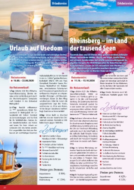 für Ihr Wohlbefinden. Nutzen Sie seeinsel Usedom. Rückkehr in Wil- fahrt durch die Uckermark erkunden ■ ■ reservierte Plätze